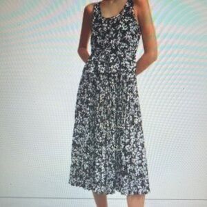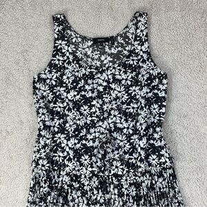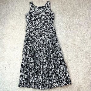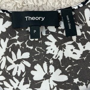 Theory Pleated Black White Daisy Floral Dress w/ Drawstring Waist Size Small