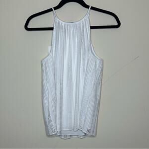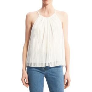 Theory Pleated Mod Lace Halter Cami Top White Tank Sleeveless Shirt NWT Size P