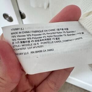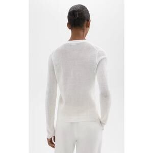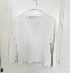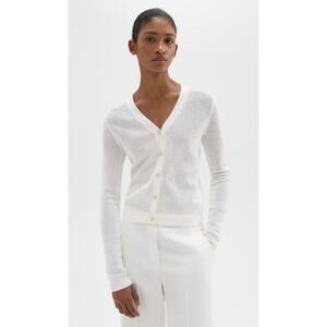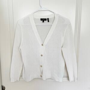 Theory Pointelle Cardigan Crepe Mesh Knit Button Front Preppy White Large