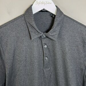 Theory Polo Shirt Bron B Atlas Pique Dark Grey Top Golf Cotton Sz M