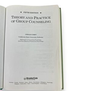 This hardcover textbook titled "Theory & Practice of Group Counseling" (5th edition) by Gerald Corey is an excellent resource for students and practitioners interested in the subject of group counseling. With over 540 pages of comprehensive coverage, this book is an invaluable tool for those seeking to develop their skills in this field. The book is authored by Gerald Corey and published by Wadsworth in 2000.