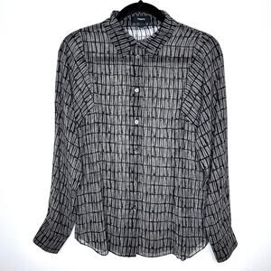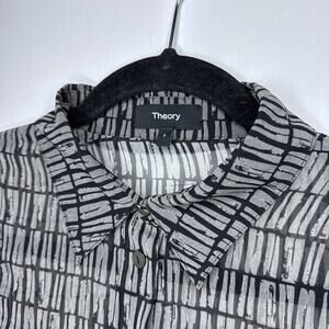 Theory Printed Georgette Cinched Shirt Tile Grey Black Small M0805505 MSRP $345