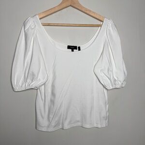 Theory Puff-Sleeve Scoop Top Clinton Knit White Top Sz M