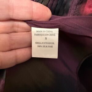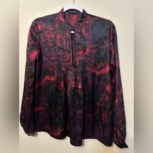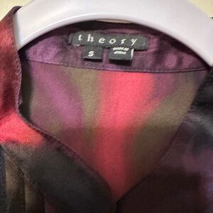 Theory Purple Black Bianca Vague Silk Pleated Keyhole Long Sleeve Blouse Small