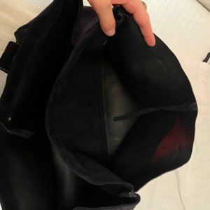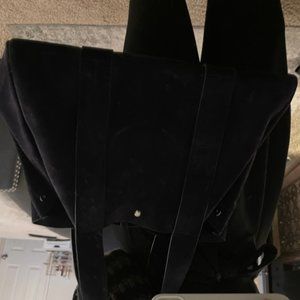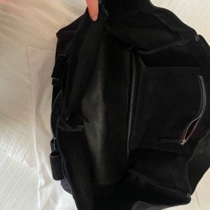 Dark navy blue in color, all suede. Has snaps on both sides to open bag up and make larger. Lots of pockets and space. Brand new condition, lightly used. Has original dust bag included.