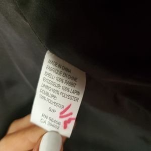 Authentic brown, rabbit fur, collar-less jacket by Theory. In excellent condition. Has hook closures down front and two slit pockets. Size small.