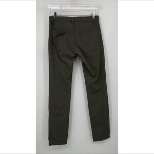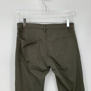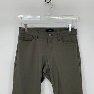 Theory Raffi slim pants trousers flat front olive green straight leg stretch 28