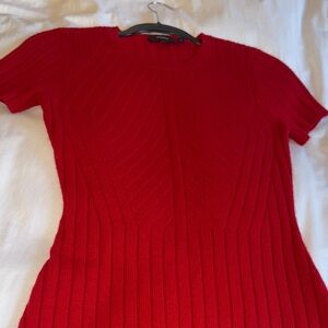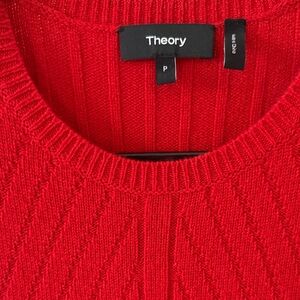 Chic red mini dress by Theory. Features ribbed design. Ideal for versatile styling. Beautiful detailing and a great cut.