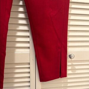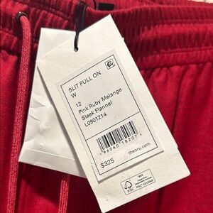 These Theory sweatpants in a vibrant red hue are crafted for ultimate comfort and style. Featuring an elastic waistband with a drawstring, they provide a relaxed fit perfect for casual or athletic activities. The soft material with a subtle matte finish ensures a sleek and comfortable wear.