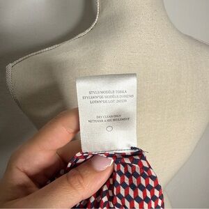 Theory Red White Blue Silk Geometric Print Blouse Size M