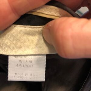 Art leg of one pant leg on each side of the leg from hanging. See last two photos. Not a hole.