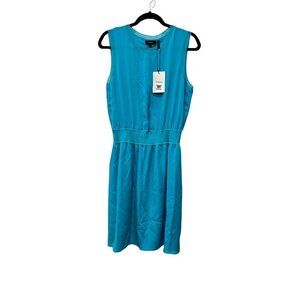 Theory Rib-Trim Dress Fiji Blue Silk Combo Women's Size L NWT w/Defect MSRP$395
