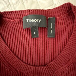 Theory Ribbed Crewneck Knit Top L Burgundy Polyamide Blend