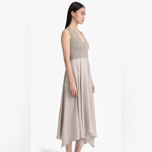 Theory Ribbed Draped Dress in Combo Knit Silver Size Small