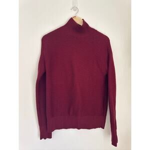 Theory Ribbed Wool Mock Neck Sweater in Burgundy, Size Small
