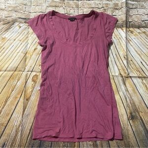 Theory Womens Small Rose Pink Soft Thin Knit Short Sleeve T Shirt in good used condition. There is a tiny pin size hole on the front. No stains, tears or rips.