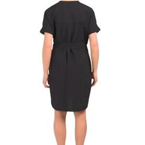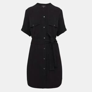 Theory Rosina Crepe Belted Cargo Shirt Dress in Black