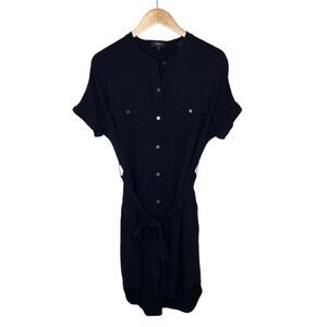 Theory Rosina Crepe Belted Cargo Shirt Dress