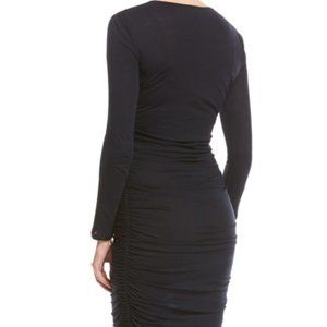 Ruched Jersey Long-Sleeve Mini Dress in Navy by Theory. In pre-loved condition with plenty of life left.