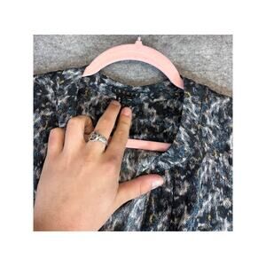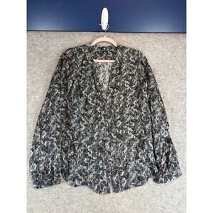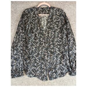 Theory Ruisa Caligula Silk Blouse Womens Medium Black AOP Long Sleeve Tunic Top