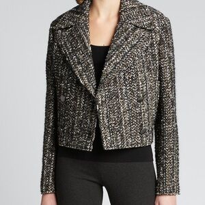 Theory Sargent Double Breasted Cropped Jacket Size 2 Tweed Brown Work Business