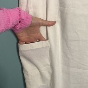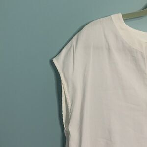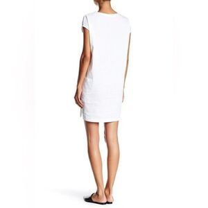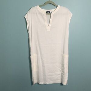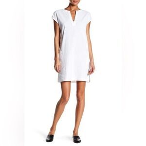 Theory Saturnina Split Neck Linen Blend Shift Dress in White
