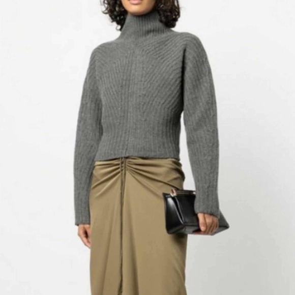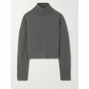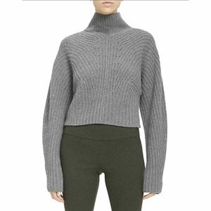 Theory Sculpted Knit Pullover Sweater Airy Wool Cashmere Grey Melange Size Small