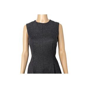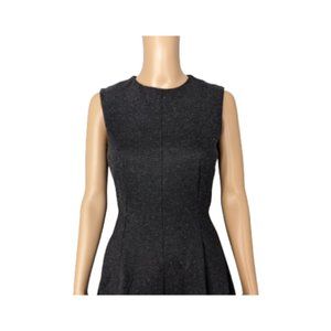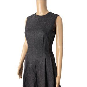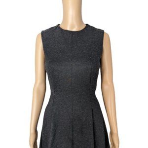 Theory Seamed Sleeveless Melange Ponte Charcoal Dress, EUC. This woolly, silk-enriched frock is styled in a fit-and-flare silhouette with shapely seams and a pleated flared skirt.