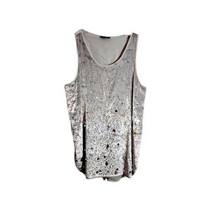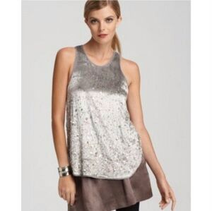 Theory "Icy Gray" "Semra G" velvet sleeveless top, glittered with shimmery sequins. Split hem side. Very good pre-owned condition.