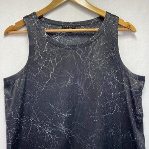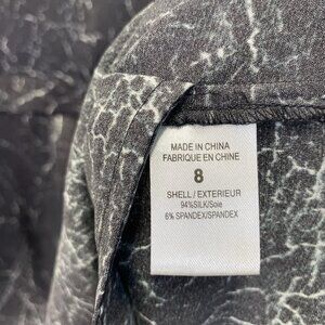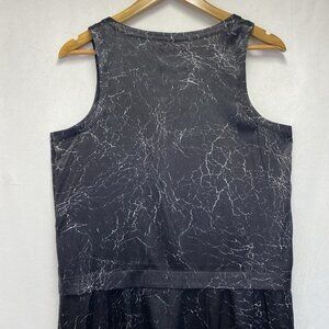 Theory Shaima Cracked Leather Print Silk Shift Dress Women 8 Black Sleeveless