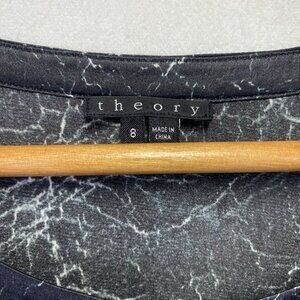 The Theory Shaima Cracked Leather Print Silk Shift Dress in size 8 is a stylish and versatile option for various occasions. This sleeveless dress features a scoop neckline and snap closure, making it easy to put on and take off. Made from a luxurious silk fabric with a drop waist and side pockets, this knee-length dress is perfect for weddings, parties, or casual outings. The black color and cracked leather print add a touch of sophistication and elegance, while the lightweight and stretchy material ensures comfort. Perfect for the summer, fall, or spring seasons.