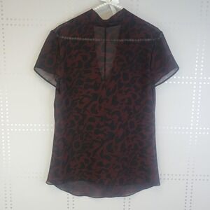 Sheer camo print Cowl neck EUC SZ M 16" chest 28" shoulder to hem measurements are approximate and taken flat
