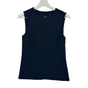Theory Shell Jacquard Textured Navy Wool Blend Top size XS Sleeveless