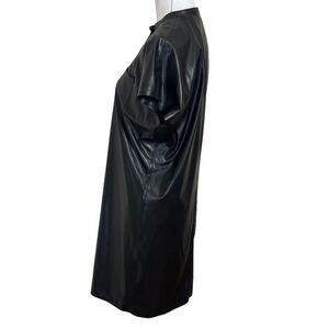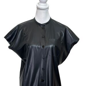 Theory Shift Dress Women’s Size Petite Black Faux Leather Button Front Missing B