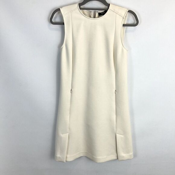 Theory Shift Dress Women’s 2 Ivory Sleeveless Vent Front Wool Blend W/ Pockets