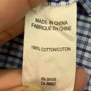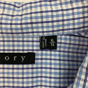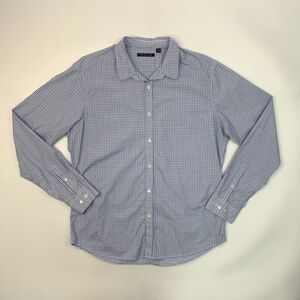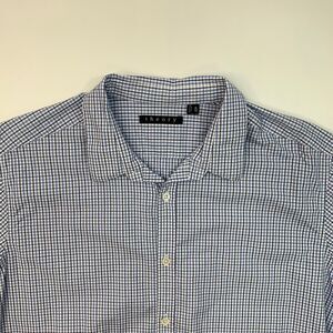 Theory Shirt Mens XL Extra Large Light Blue Navy Cotton Plaid Zack Button Up