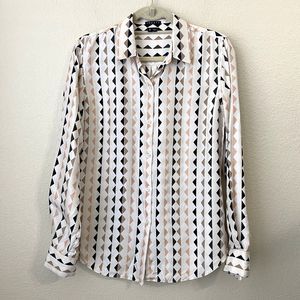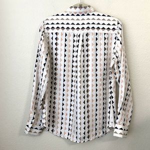 Theory Shirt Womens Medium Linigole Diamond Print Silk Cream Black