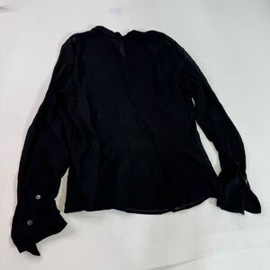 Theory Shirt Women Large Black Silk Pleated Button Down Dionelle Texture Chiffon