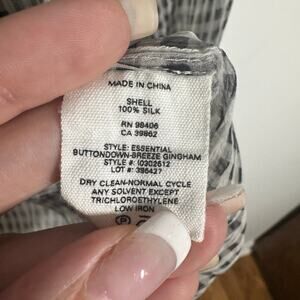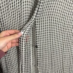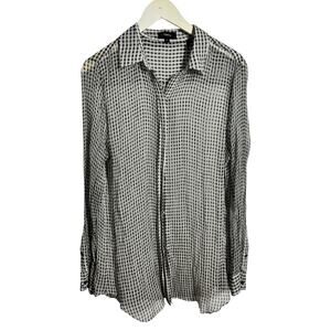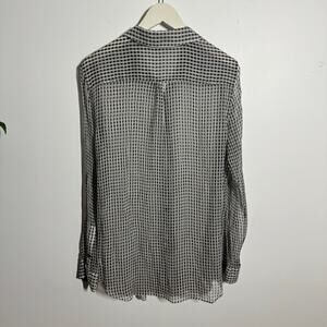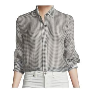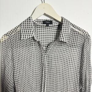 Theory Silk Gingham Button Down Blouse Women XL Black White Sheer Popover Career