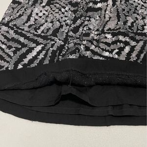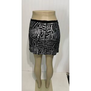 Theory Silk Mini Sequin Skirt Black Silver Size 2