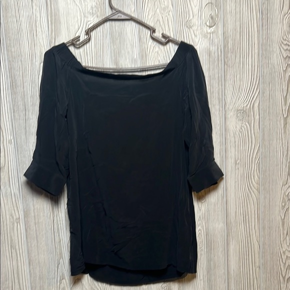 Theory Silk Off-Shoulder Joscla Blouse Top Sz Medium Puff Sleeve Black Chiffon