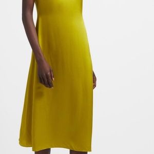 Theory Silk Satin Cap Sleeve MIDI Dress in Citron