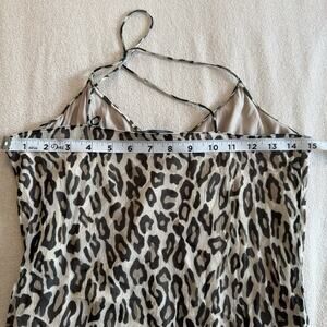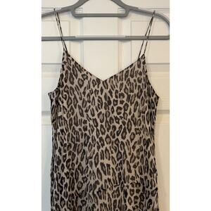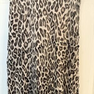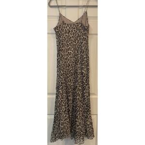 Theory Silk Slip Dress Sz 4 Asymmetrical Waist Maxi Leopard Crinkle Boho Gypsy