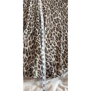 This Theory Silk Dress in size 4 is a stylish and versatile piece perfect for various occasions such as weddings, parties, or casual outings. The dress features a flattering V-neckline, sleeveless design, and a pullover closure for easy wear. Made from luxurious silk chiffon material, this maxi dress in a beautiful beige color with leopard print pattern adds a touch of animal print to your wardrobe. The dress is hand wash only to preserve its quality and is designed to be worn in any season. Perfect for those looking for a chic and sophisticated boho or gypsy-inspired look.