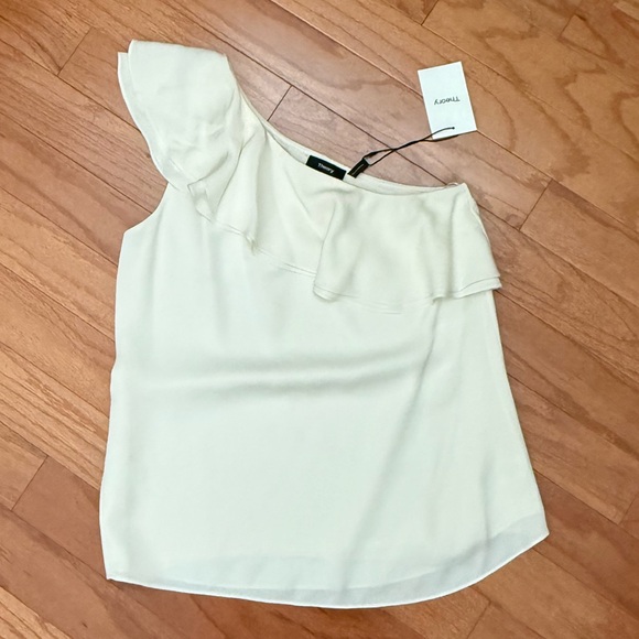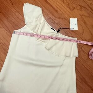Super soft 100% silk one shoulder top. Perfect for spring and summer. Color is more of a light light cream/off white. NWT.