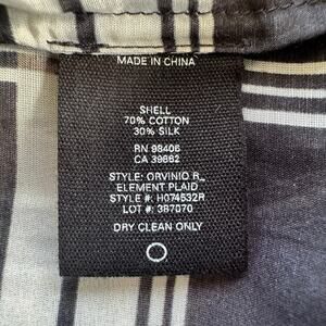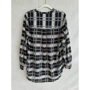 Theory Silk Cotton Blend Tunic Blouse Sheer Black White Plaid Size Medium