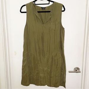 Theory Silk sleeveless Shift Dress Wandu 12 army green pockets