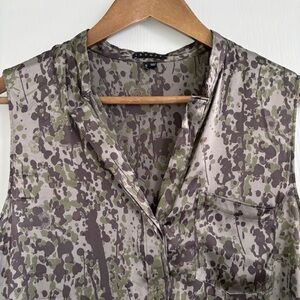 Theory Sinaclaire Silk Camo Tank Top Small Smokescreen