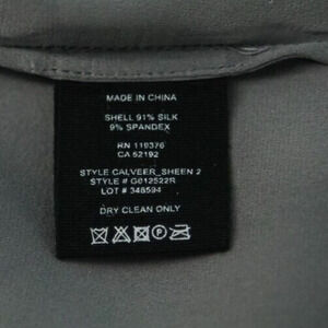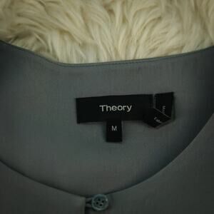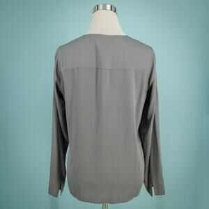 Theory Size Large L Calveer Sheen Grey Gray Pleated Front Crew Neck Long Sleeve Silk Spandex Blend Top Blouse Shirt