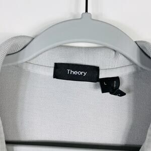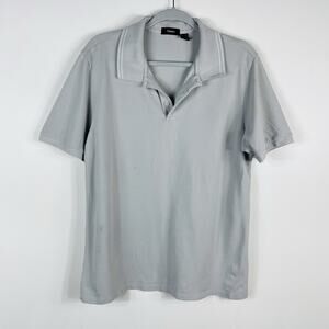 Theory Size Large Striped Collar Precise Polo Shirt Gray Short Sleeve Cotton
